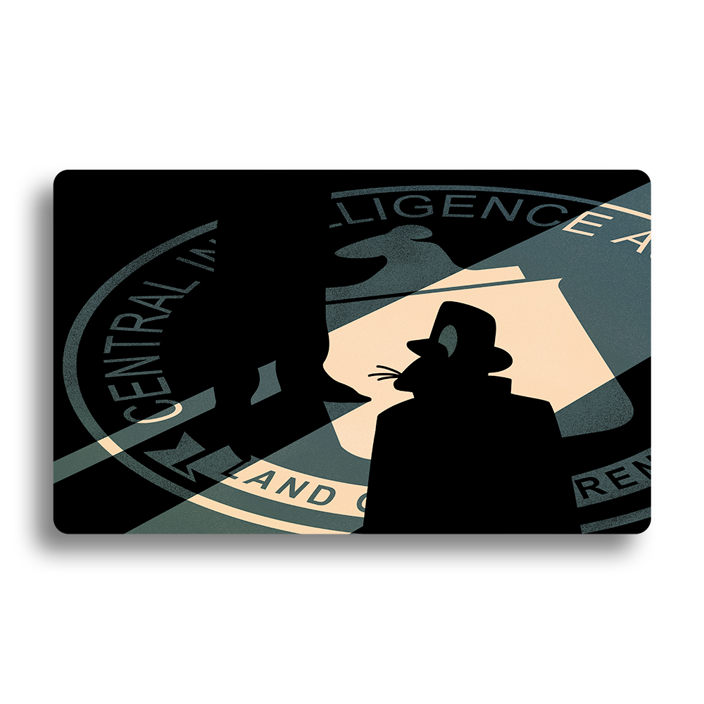 Rathew nearly brought ruin to the realm through conspiracy and covert meddling in national affairs and now you can have a comfortable mat in his likeness with a redesign of an iconic Langley based organization artwork!