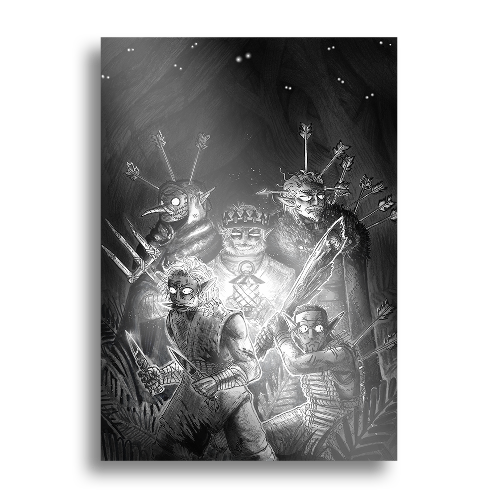 When the Elf nation first set off into the forest regions of the South the only thing they were met with was the terrors of the dark. This piece marks the foundation of Ren and the struggles of the first days in an amazing hand drawn composition.